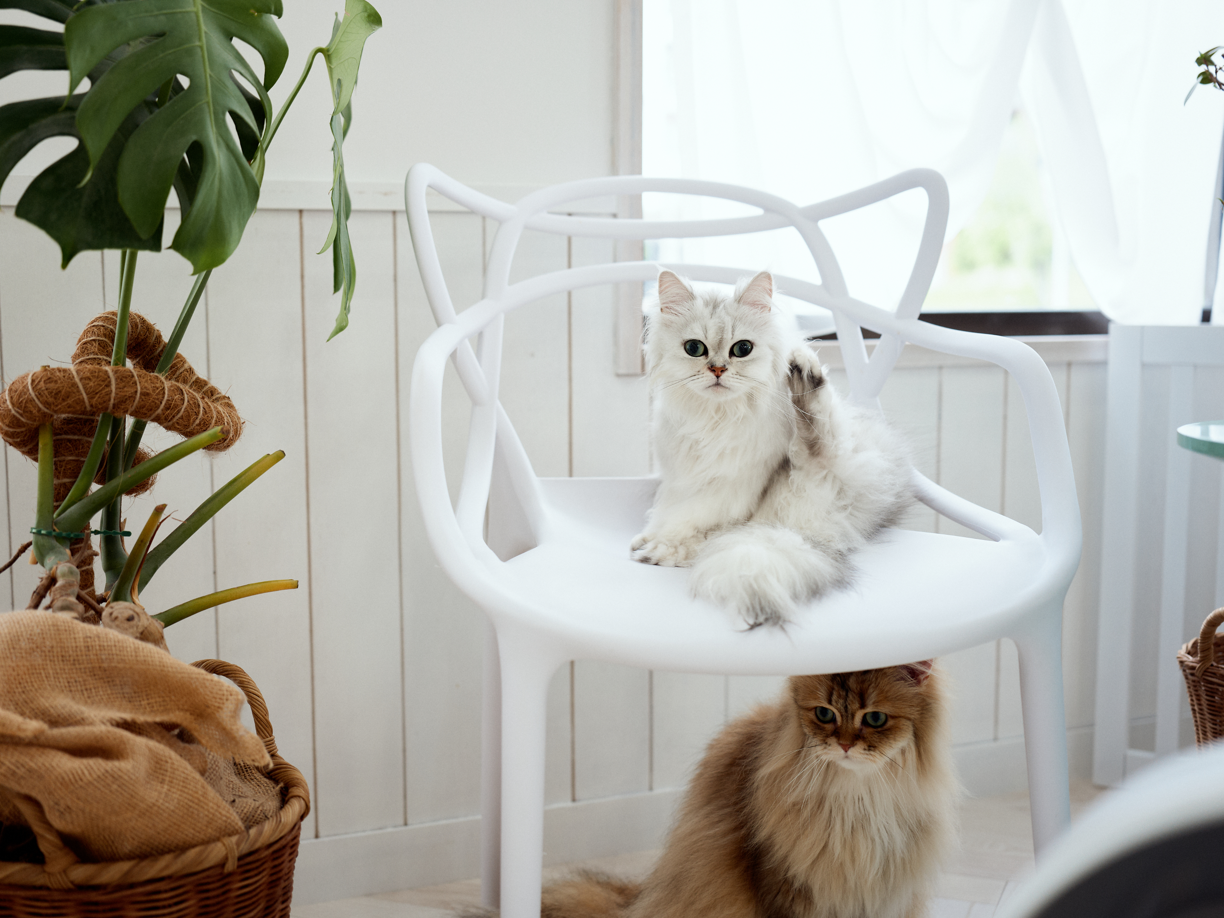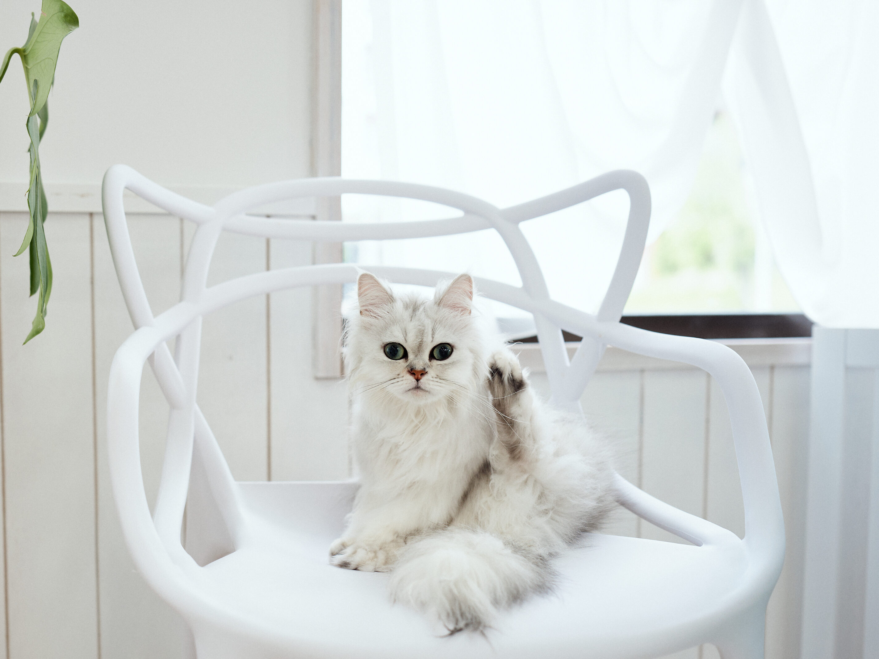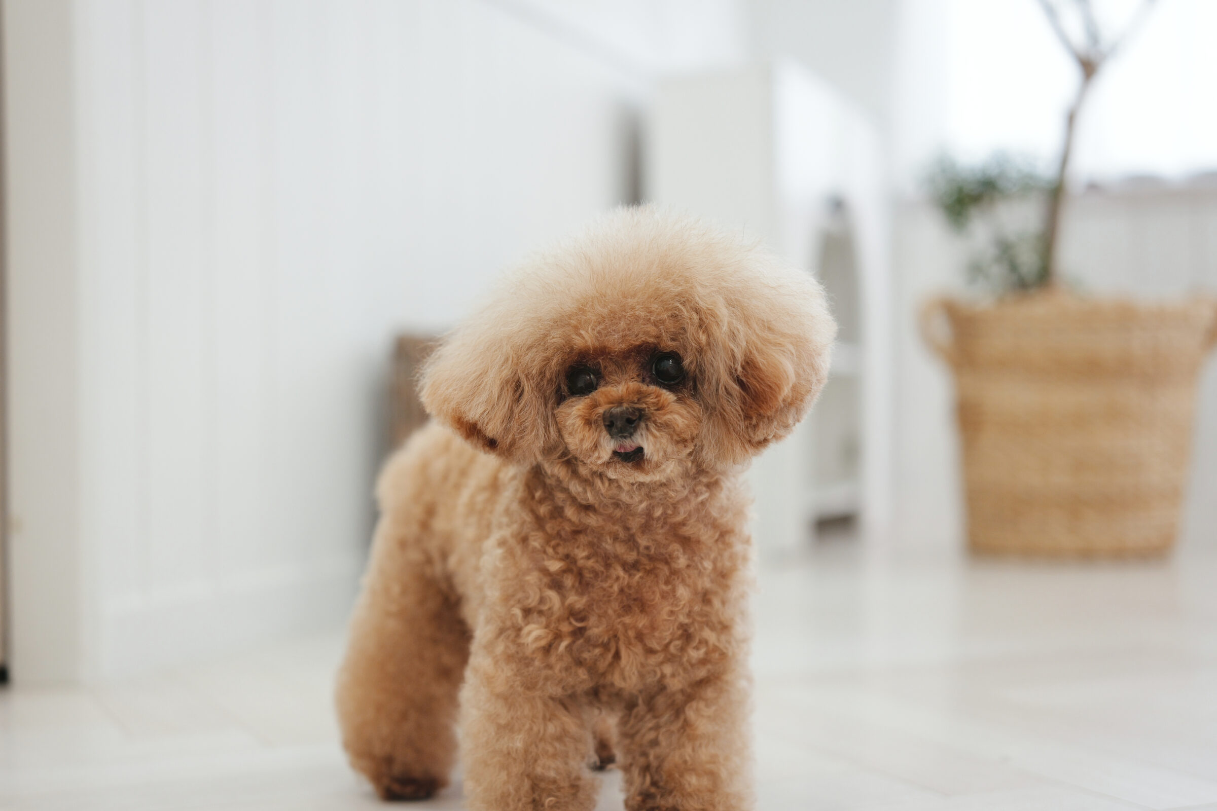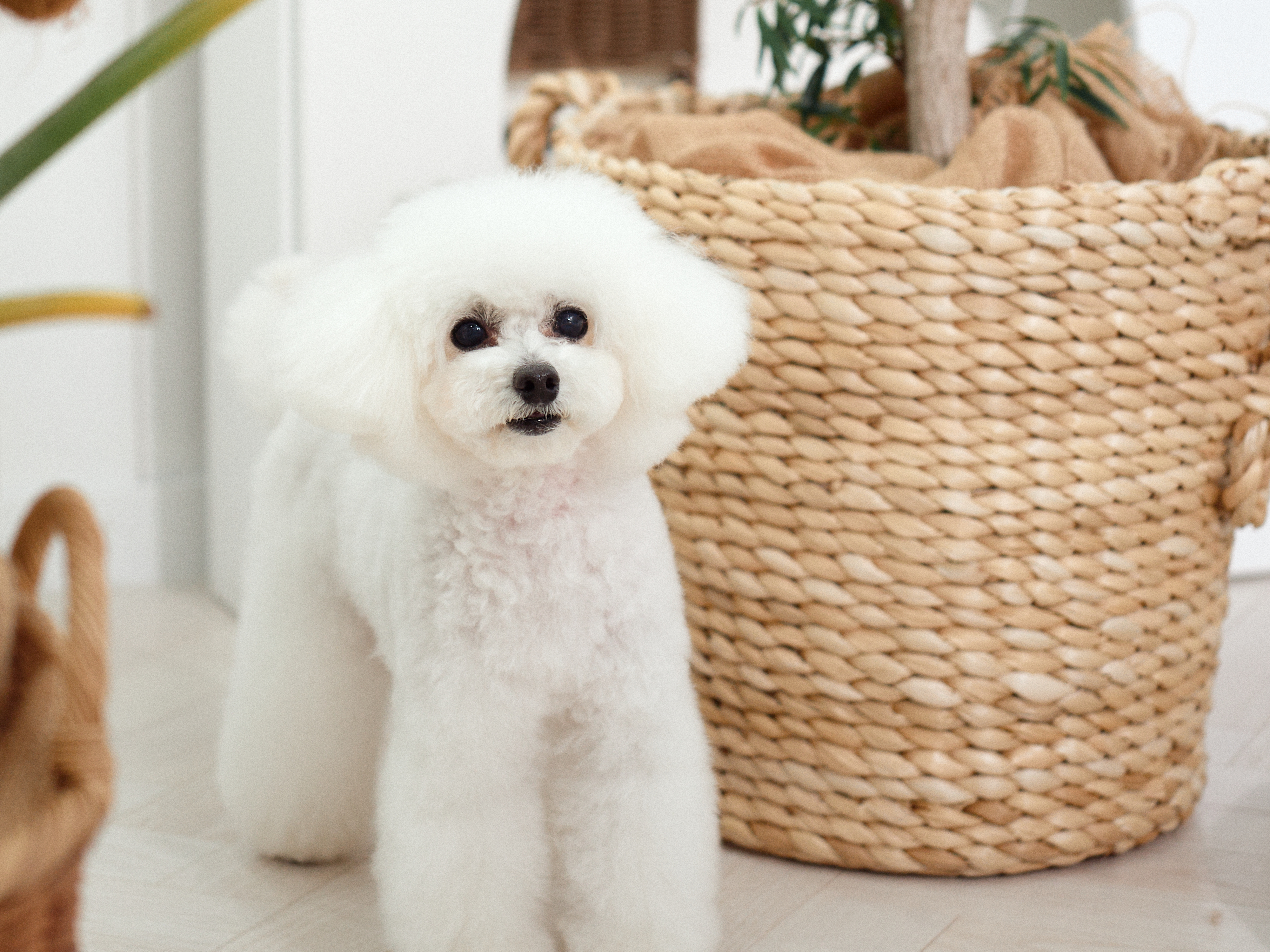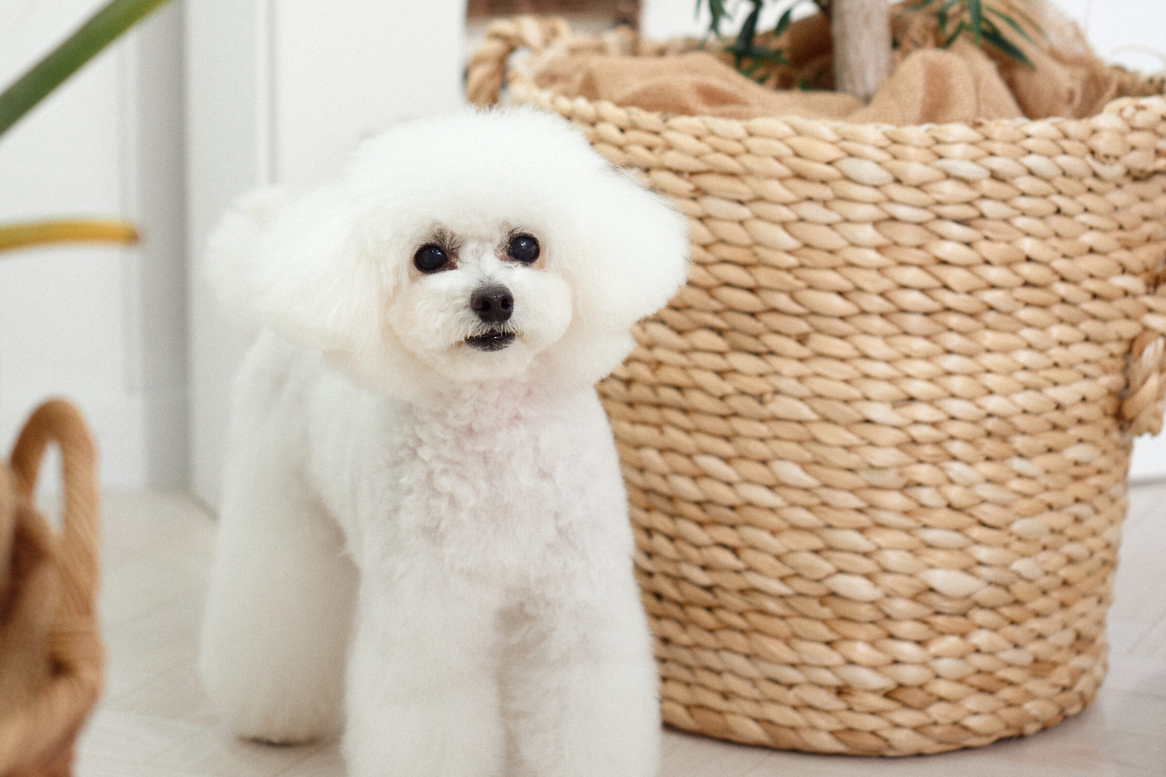 室内は漆喰で囲まれた白のワンルームのお部屋。ルームシューズでお家のような綺麗な環境でトリミングを行っています。自由に過ごしながらお迎え待ち。