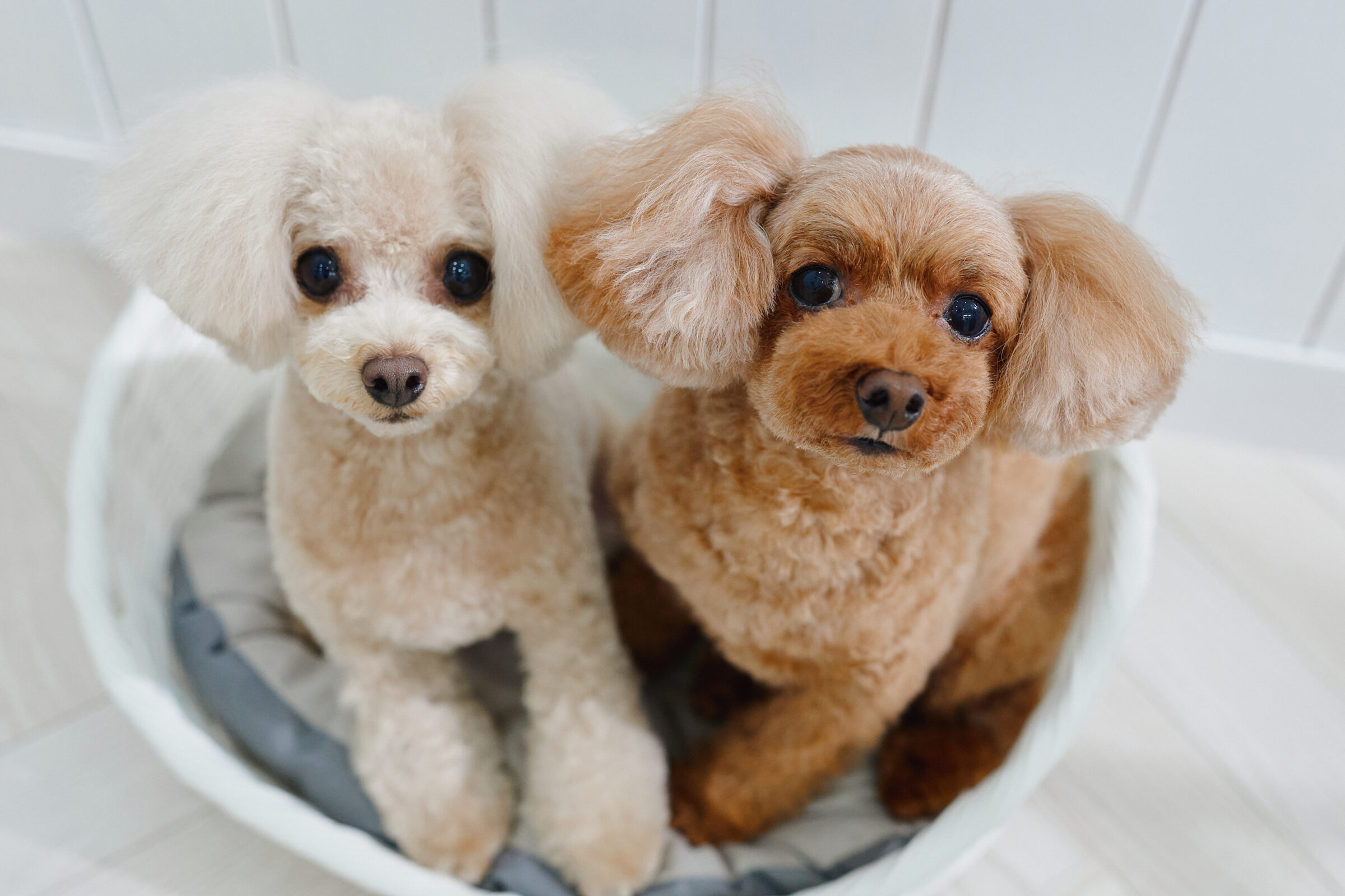 トイプードルちゃんの場合で、お預かり時間2時間半前後でのお迎えが目安になります。ご不便をおかけしてしまい申し訳ございませんが、何卒ご理解いただけますと幸いです。 - パピーのファーストトリミングで最終ワクチンが間に合っていません。