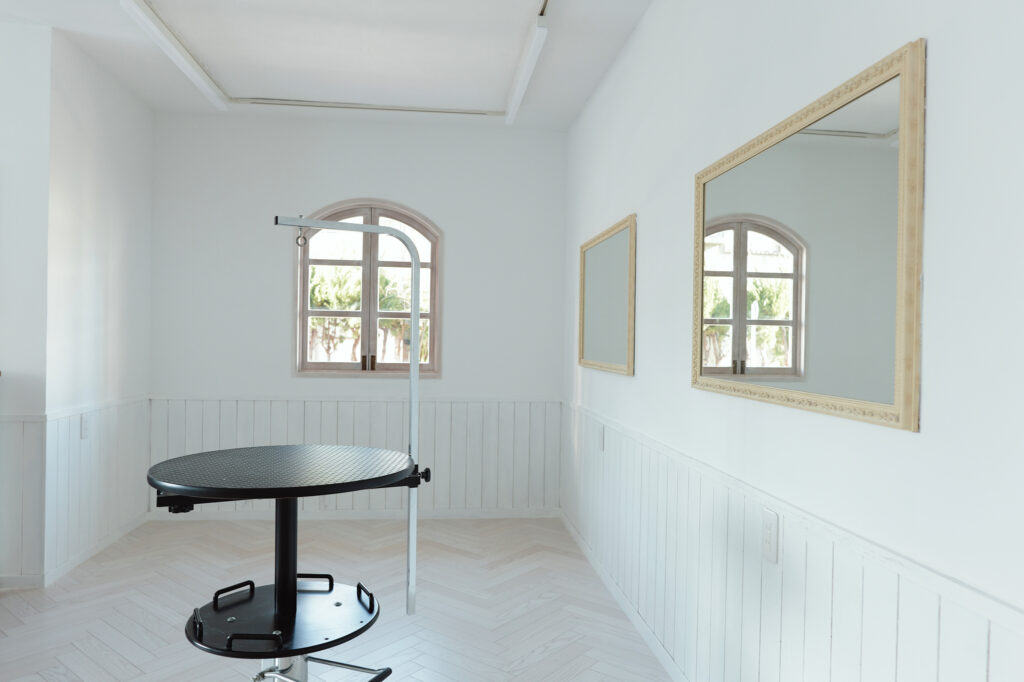 わんちゃんが過ごす空間をより清潔に保つため、トリミングを行っている室内スペースをお家のように靴を脱いであがるスタイルに変更しました。お家に近い環境になることでわんちゃんのストレス軽減に繋がればと考えています。